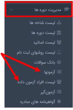 ماژول مدیریت دوره ها ….بخش آزمون ها / لیست افراد آزمون داده